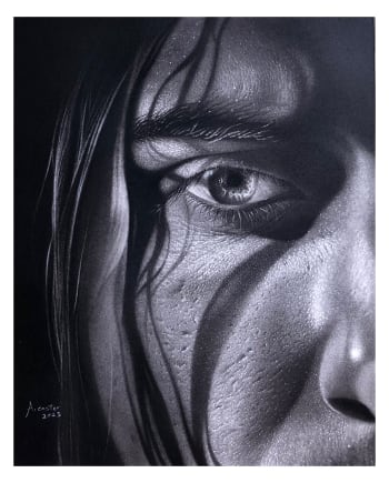 Abraham Caster (b. 2001) is a self-taught hyperrealism artist from Nigeria, known for creating emotionally charged portraits that blend stunning detail with deep storytelling.